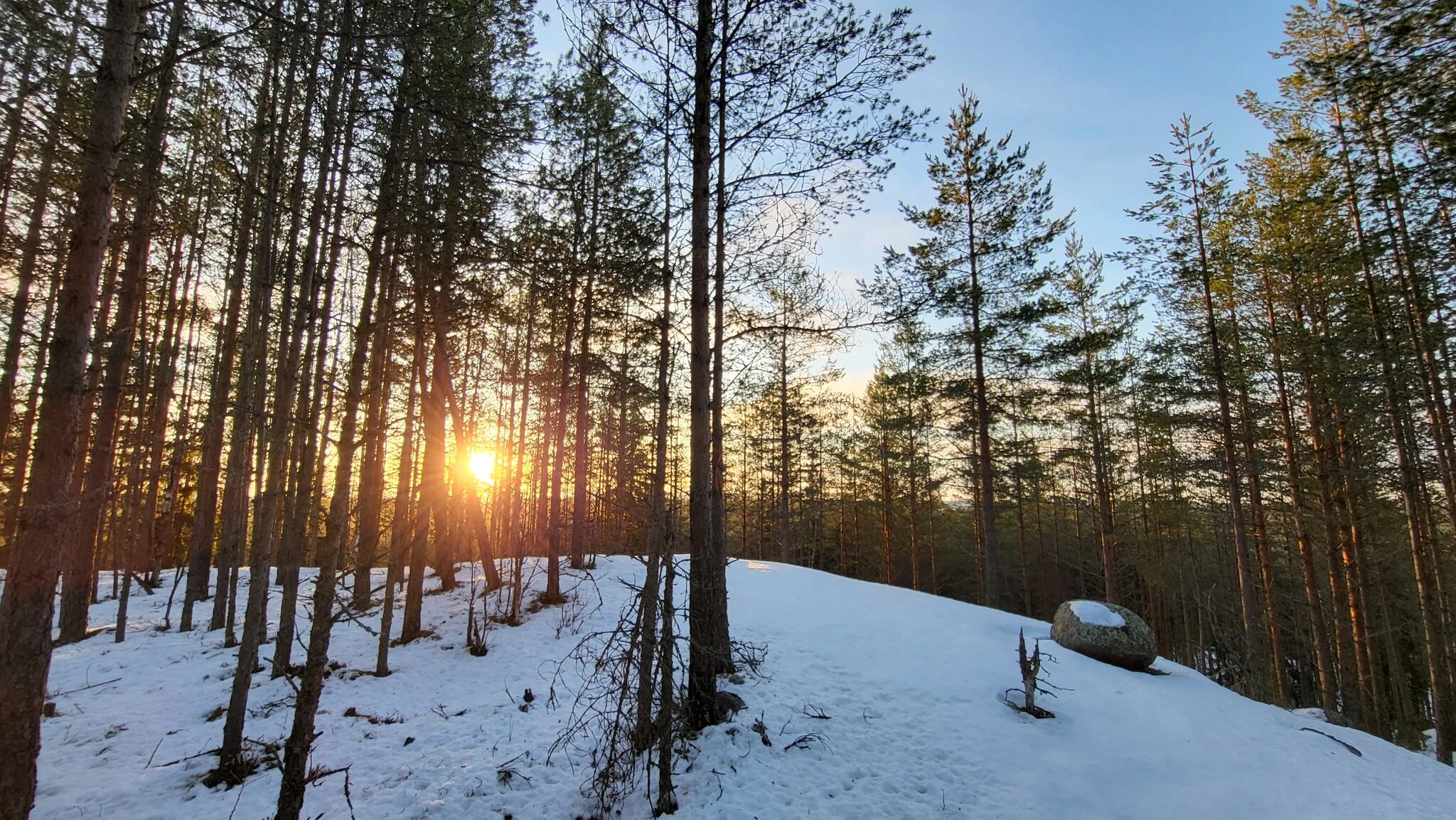 The descent from Aihki hill with wide skishoes is medium to demanding due to the height difference and the dense forest. For snowshoes, the descent is gentle and therefore easy.