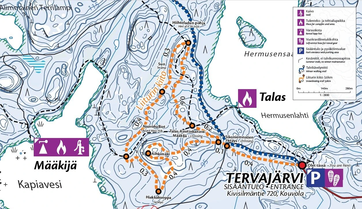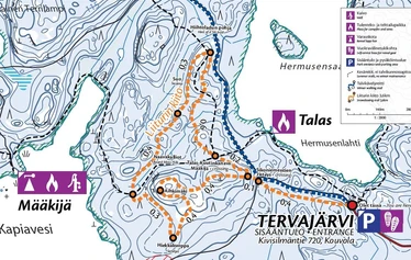 The direction of movement is clockwise and the direction of movement must be strictly obey. The trai is two-way on Tervajärvi - Puunlatvamerkinmäki.