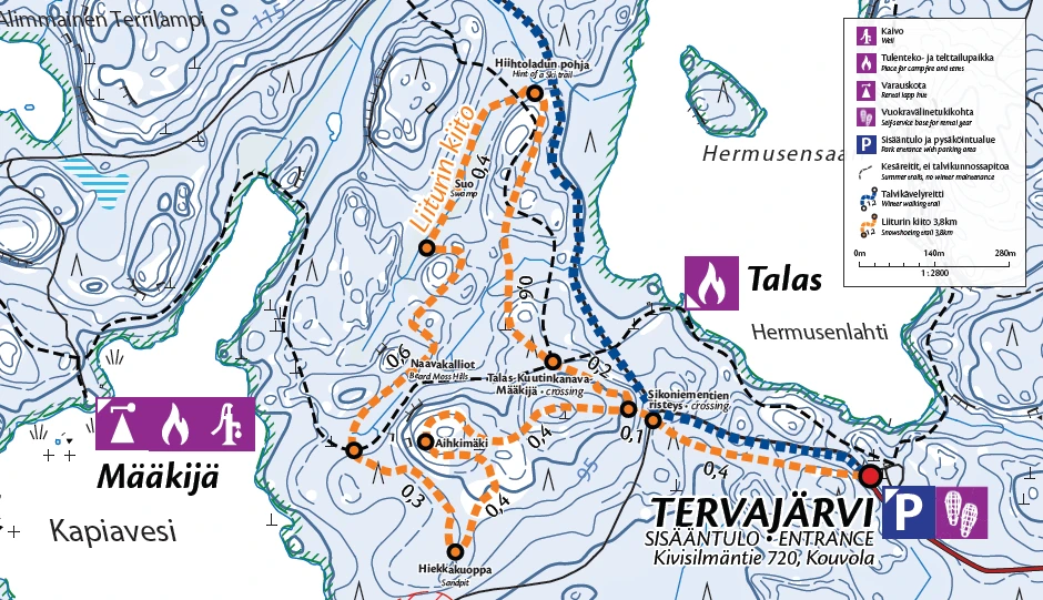 Liiturin kiito on 3,6 km pitkä ja reitillä saa liikkua lumikengillä ja suksilla.